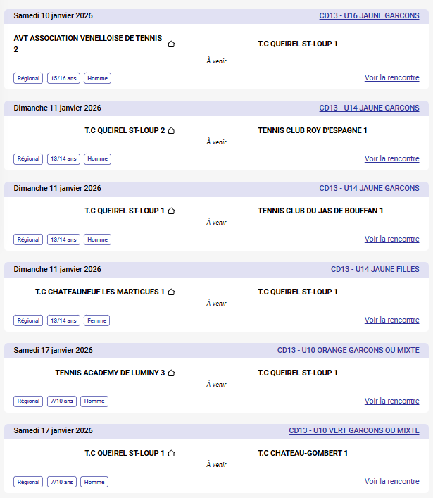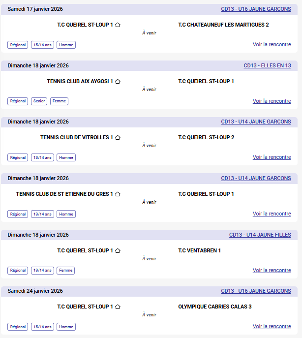 Suivez l’évolution des compétitions et des classements de nos joueurs dans les championnats nationaux et régionaux sur la page rencontrer