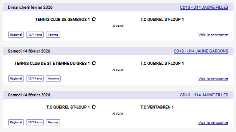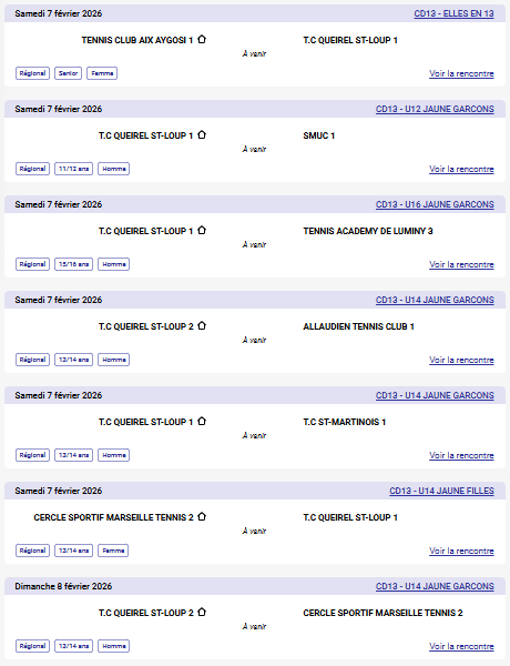 Plus d’informations pour les matchs de Février: içi